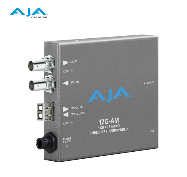 El AJA 12G-AM es un miniconvertidor de 8 canales con función de Embedder/Disembedder de audio AES que admite entradas y salidas 12G-SDI de hasta 4K/UltraHD. Los modelos de fibra ofrecen E/S de fibra de enlace único, incluidas opciones LC y ST.