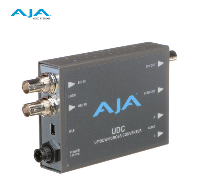 El UDC es un miniconvertidor Up/Down/Cross con calidad de emisión que puede convertir entre formatos de vídeo 3G, HD y SD. Utilizando la misma tecnología de conversión líder en el sector de AJA que nuestro FS2, el UDC ofrece conversiones de muy alta calidad a un precio reducido. Las E/S incluyen entrada y salida SDI 3G/HD/SD, salida HDMI y salida de audio de 2 canales tipo RCA. El UDC se puede controlar mediante interruptores DIP locales, con control adicional disponible a través de USB y la aplicación MiniConfig de AJA. Una entrada de referencia permite bloquear el UDC a una referencia local.