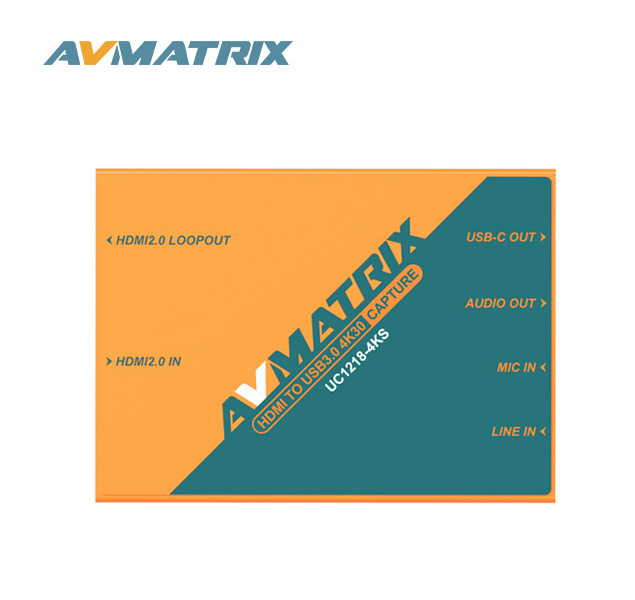 Captura vídeo y audio sin comprimir con la caja de captura UC1218-4KS HDMI a USB 4K de AVMATRIX. Equipada con una entrada HDMI 2.0 y una salida HDMI 2.0 en bucle, esta versátil caja te permitirá empezar a trabajar en cuestión de minutos gracias a su funcionalidad plug-and-play, sin necesidad de controladores. Un puerto USB-C 3.0 de 5 Gb/s permite una conectividad perfecta con una gran variedad de opciones de streaming populares, como OBS, Zoom, MS Teams, Twitch, vMix y muchas más. El dispositivo es compatible con los sistemas operativos Windows, Linux y macOS.