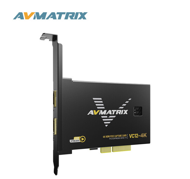 Tarjeta de captura VC12-4K UHD 4K HDMI PCIe de AVMATRIX con entrada HDMI y salida en Loop. La interfaz PCIe 2.0×4 admite vídeo UHD 4K a 60 fps. Emite vídeo YUY2 sin comprimir para obtener una imagen de alta calidad.