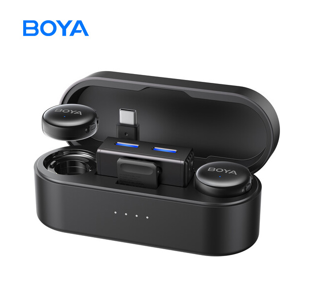 Gracias a su chip con inteligencia artificial para la cancelación avanzada del ruido, el sistema de micrófonos inalámbricos para dos personas BOYALINK 3 de BOYA permite capturar fácilmente el audio en una amplia variedad de entornos. El sistema incluye dos transmisores ultracompactos con micrófonos omnidireccionales, un receptor de doble canal con montura de zapata y un adaptador USB-C para convertir el receptor en una interfaz enchufable. Graba audio a 48 kHz y 24 bits en cámaras y dispositivos móviles. Los accesorios adicionales incluyen un estuche de carga, un cable de audio TRS de 3,5 mm, un cable USB-C, imanes de montaje, clips y protectores antipolvo de pelo.