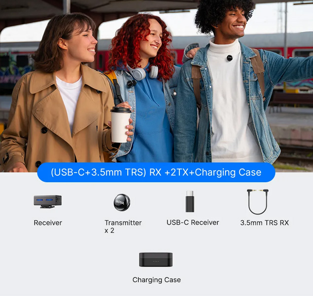 BOYALINK 3 | (USB-C + Lightning + TRS de 3,5 mm) RX + 2 TX + Estuche de carga