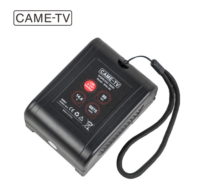 La batería ligera CAME-TV Mini 99 con montura en V tiene una capacidad de 99 Wh. La Mini 99 es perfecta para su uso en cámaras más pequeñas, así como en aplicaciones que se benefician de su reducido tamaño. Su capacidad de 6,8 Ah y su tensión de salida de 14,4 V son suficientes para alimentar la mayoría de las cámaras profesionales.