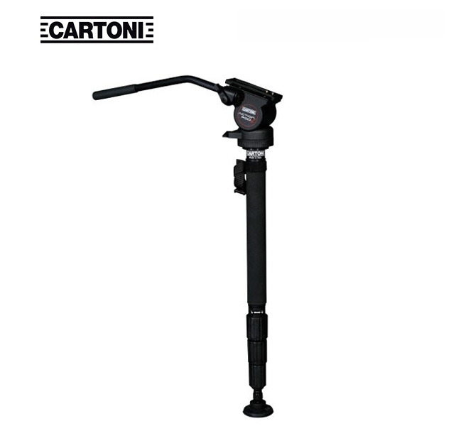 Este monopié de fibra de carbono, robusto a la par que ligero, cuenta con tres secciones y incorpora en su parte superior un cabezal fluido con funciones de giro e inclinación.