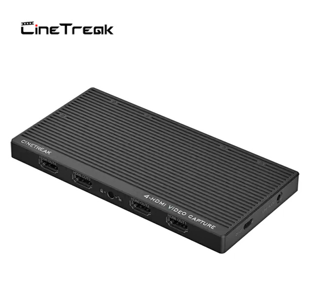 El CineTreak CT-4 es un dispositivo de captura de vídeo de nivel profesional que integra cuatro entradas de señal HDMI con capacidad de conmutación en directo, lo que permite la captura y transmisión simultánea de cuatro canales de señales de ultra alta definición 4K60 a través de un único cable tipo C. Al cumplir con el protocolo estándar UVC, no requiere la instalación de controladores y ofrece compatibilidad «plug-and-play» con los sistemas Windows, macOS y Android. Funciona a la perfección con populares programas de streaming como OBS Studio, vMix y Zoom, así como con aplicaciones móviles como «V Director Recording», lo que proporciona una solución de producción completa para retransmisiones en directo con múltiples cámaras, educación en línea, conferencias corporativas y mucho más.