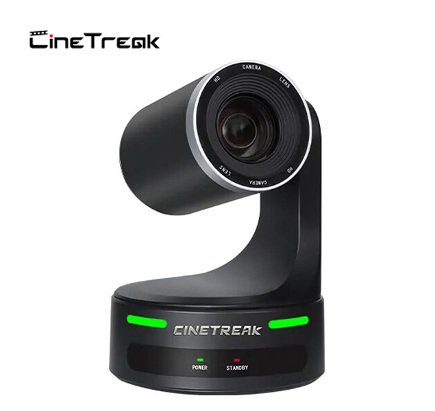 La cámara PTZ CT-PT12 de CineTreak. Con un zoom óptico de 12 aumentos y un sensor CMOS STARVIS de Sony de 1/2,8″ integrado, la CT-PT12 graba vídeo con una resolución de hasta 1080p a 60 fps y transmite simultáneamente vídeo Full HD 1080p a través de sus interfaces HDMI, SDI e IP. Esta cámara incorpora la funcionalidad PTZ con seguimiento humano avanzado mediante IA a sus producciones educativas, de conferencias o de retransmisiones en directo.