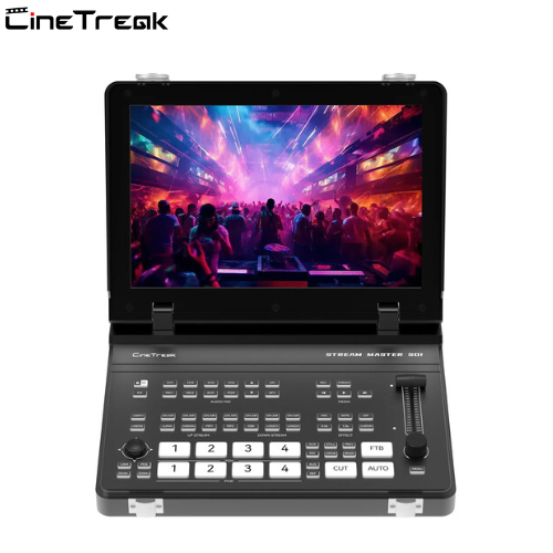 El switcher graba archivos Full HD de alta velocidad de bits para una reproducción regular e instantánea, lo que lo hace ideal para diversas aplicaciones en la producción profesional en vivo. El control de cámara PTZ integrado permite conectar hasta cuatro cámaras mediante el protocolo VISCA, y los modos horizontal y vertical permiten cambiar rápidamente entre las relaciones de aspecto 16:9 y 9:16.