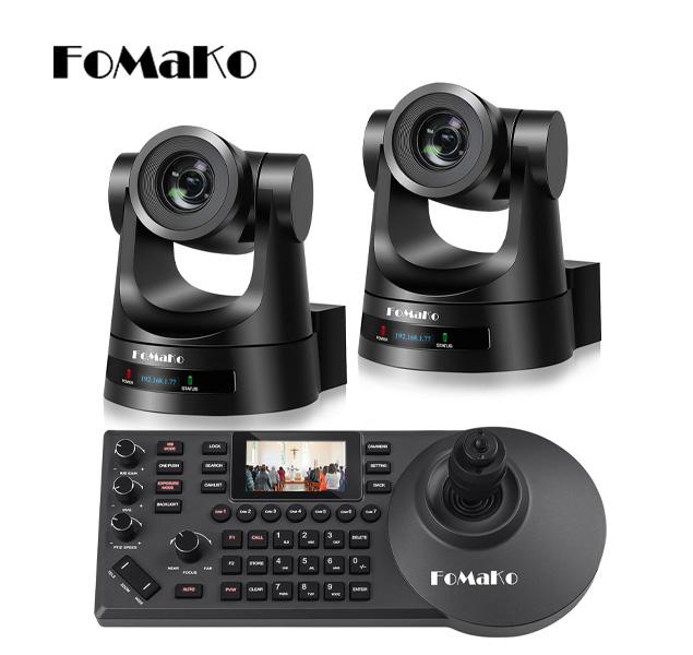 El paquete de cámaras PTZ FoMaKo INCLUYE: 2 cámaras PTZ FMK20SDI HDMI y 1 controlador de cámara PTZ IP KC-608