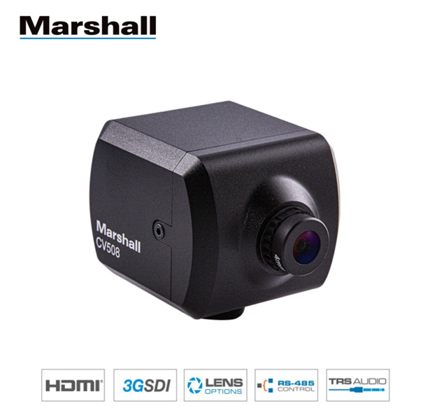 La nueva cámara Marshall CV508 es una cámara POV con calidad de transmisión que ofrece un rendimiento de video excepcional HD 4:2:2 de 10 bits (BT.709) desde un cuerpo de aleación de aluminio duradero y discreto con lentes intercambiables flexibles. El nuevo sensor de Sony ofrece vídeo con colores ricos y precisos, sensibilidad mejorada en condiciones de poca luz y funciones refinadas de ajuste y combinación remotas, lo que la convierte en la cámara POV más potente del mercado.