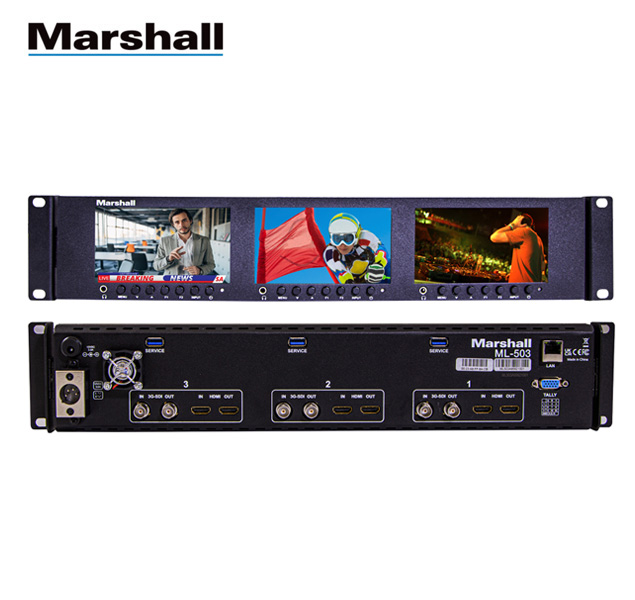 Marshall ML-503 Monitor triple de 5″ montable en rack con entradas HDMI y 3G-SDI